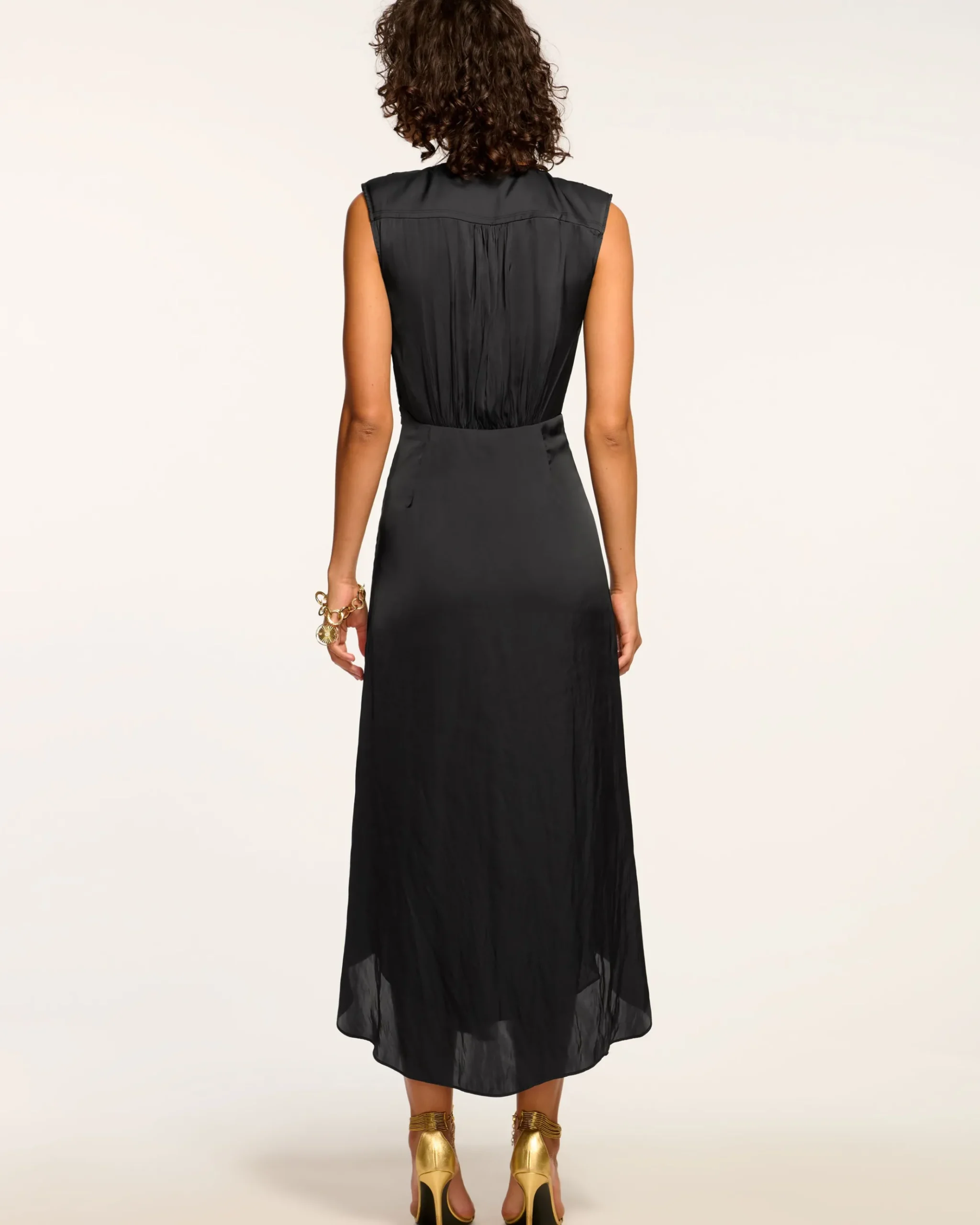This midi dress’s flattering v-neckline, structured shoulder, and cascading ruffle accent will make it a go-to in your closet this fall. Dress it up with heels for a cocktail party or down with a high-knee boot for a dinner party.