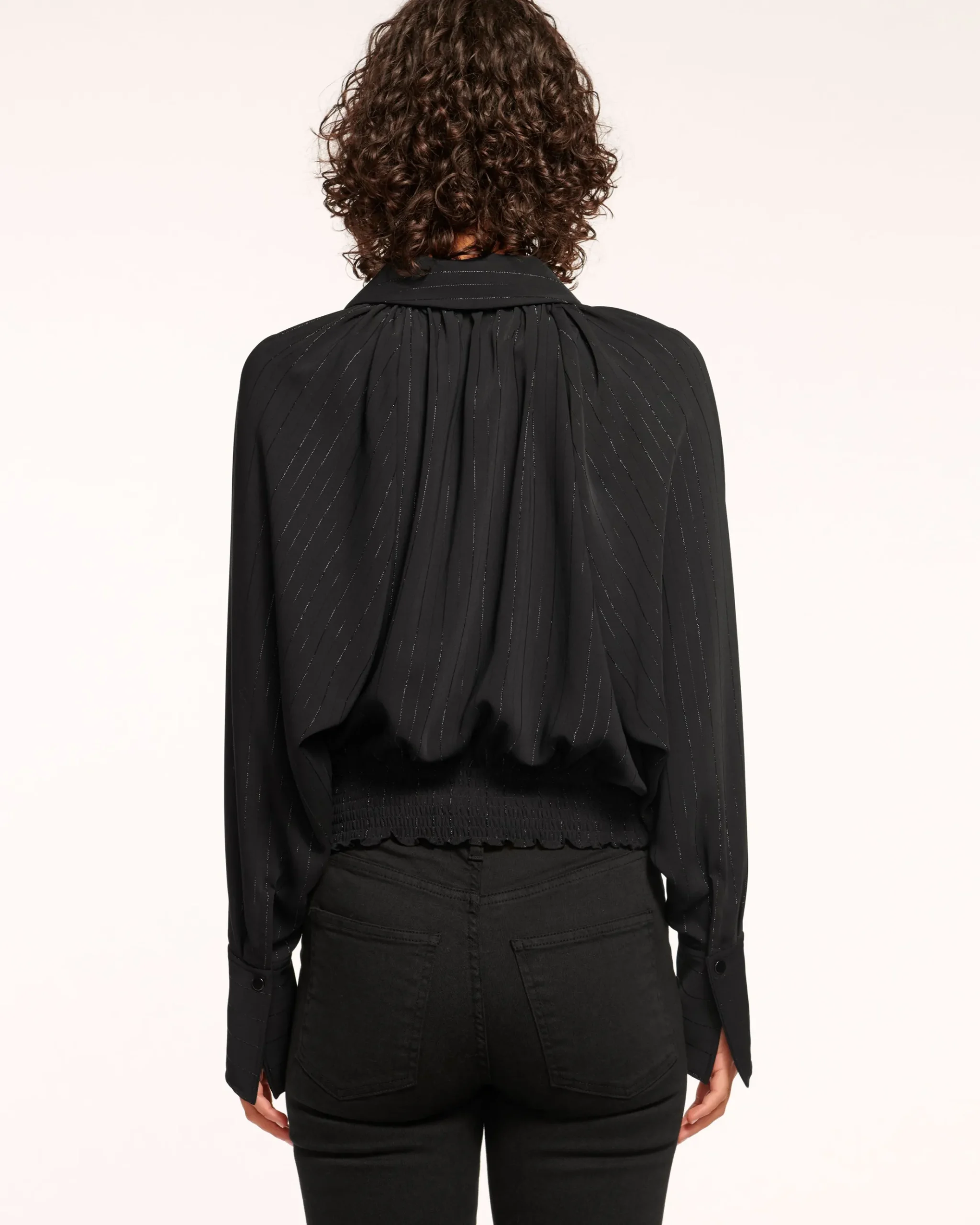 Step out in stripes in our Oliver Top. The black stripe pattern adds a touch of urban-sophistication-meets-classic to your wardrobe. This versatile piece embodies the Ramy Brook ethos of effortless style, perfect for the woman always on the move.