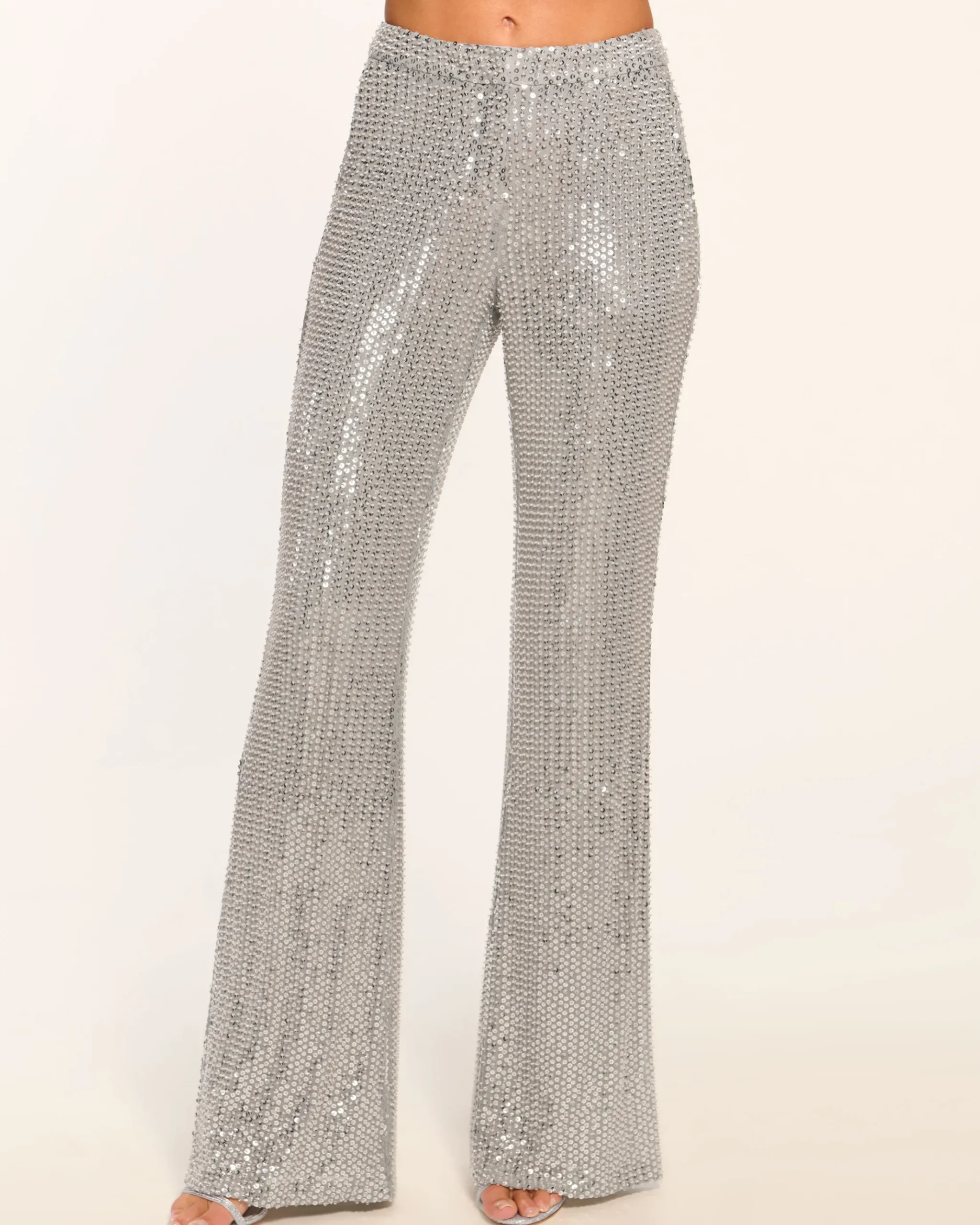 Meet the Olivian: the perfect party pant. This seventies-inspired flare pant is crafted from an allover sequin beaded mesh fabrication and made for nights on the dance floor. Style with the matching Sullivan halter top for a high impact look, or switch it up and style with a silky pop of color halter top or dress it down with a sweater.