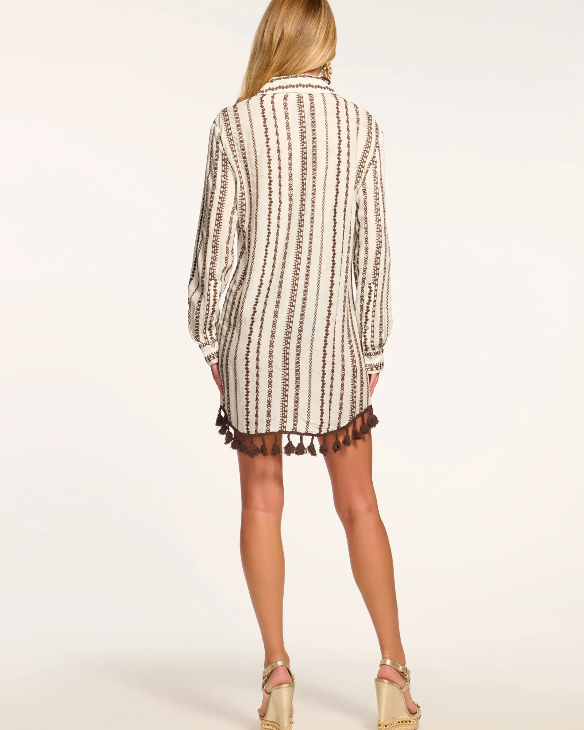 The answer to “what does casual luxury feel like?” Embroidery elevates while tassels celebrate, creating the perfect balance of refined and relaxed. Button it up for lunch, leave it open over swimwear – versatility never looked so victorious.
