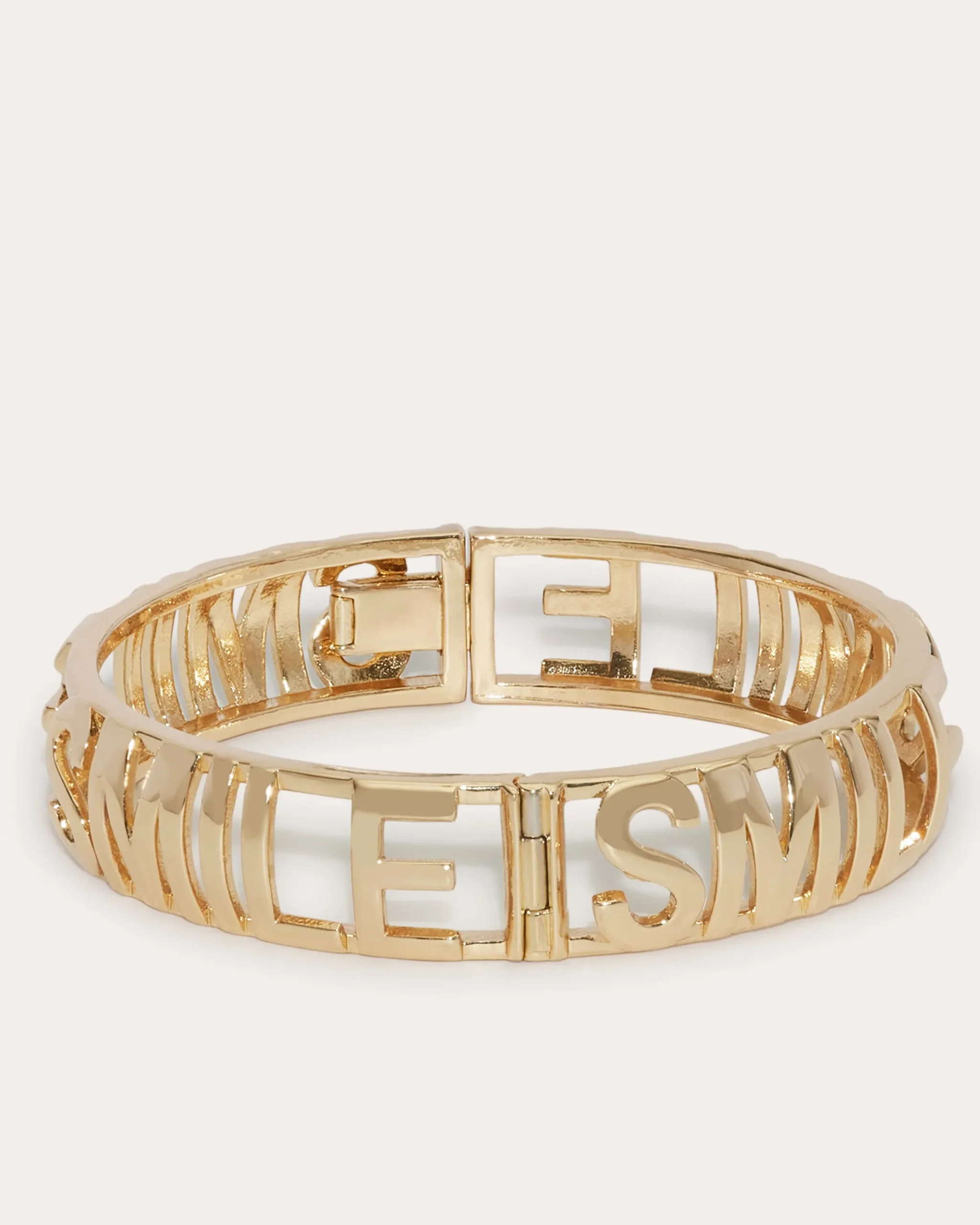 Boost your mood with every glance at your wrist with the Smile Bracelet, a beautiful cuff complete with an uplifting yet simple message. Whether worn alone or stacked with your favorite arm candy, this gleaming style is worth taking notes from.