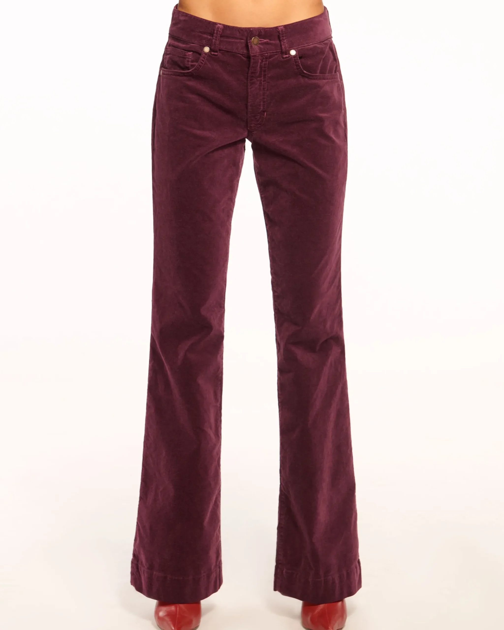 A fall-forward take on the best selling Kyle Jean, the Velvet Kyle features a low rise, perfect for styling with a sweater or full length blouse and an elongating flare leg. The cotton velvet denim offers a sculpting, soft fit.