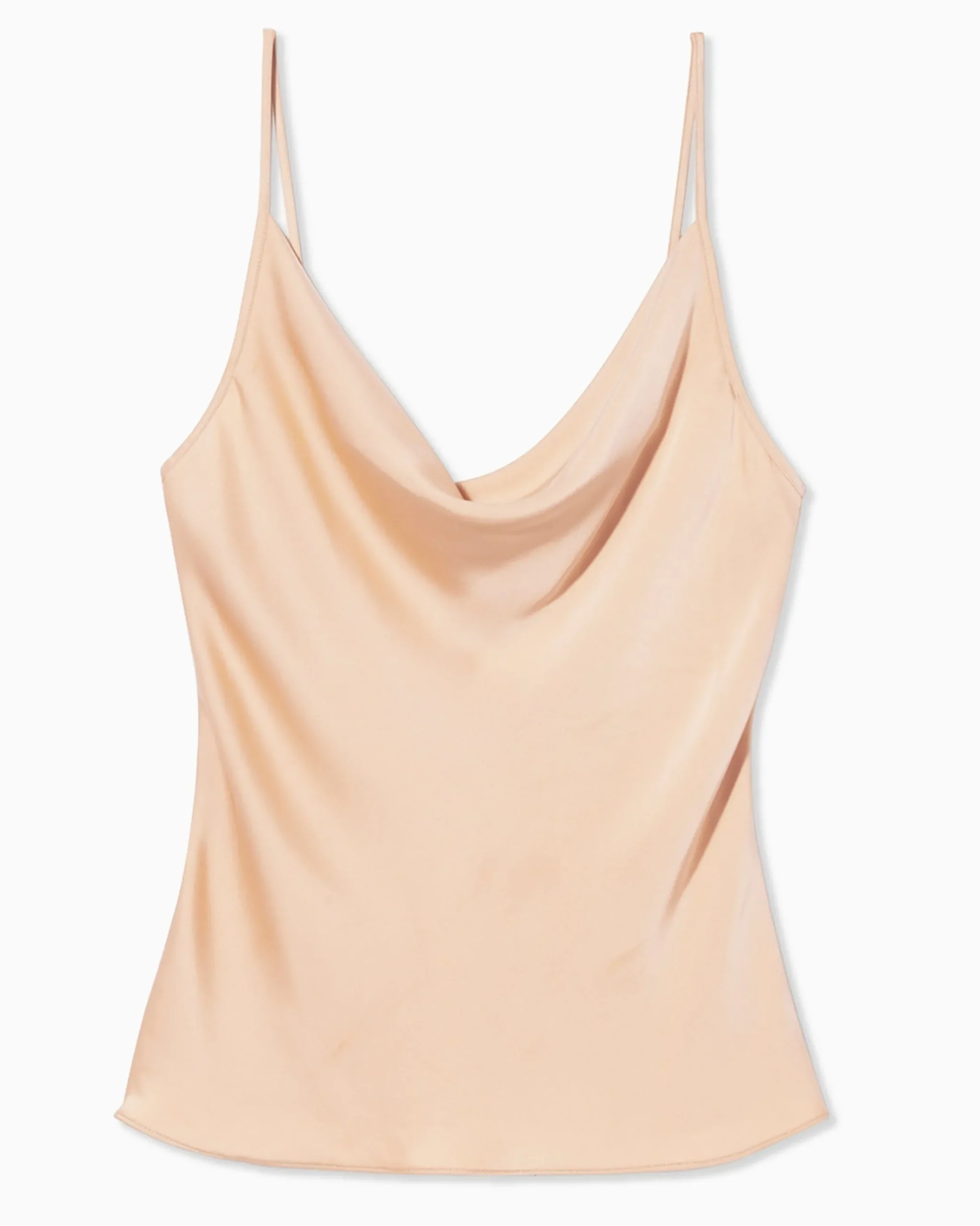 Give your wardrobe a seasonal upgrade with the Abigail, a covetable copper camisole that can be styled in countless ways. Let your femininity shine through with this fitted satin silhouette, fashioned with thin adjustable straps and a cowl neck, and achieve a refined look whether worn alone or beneath a jacket.