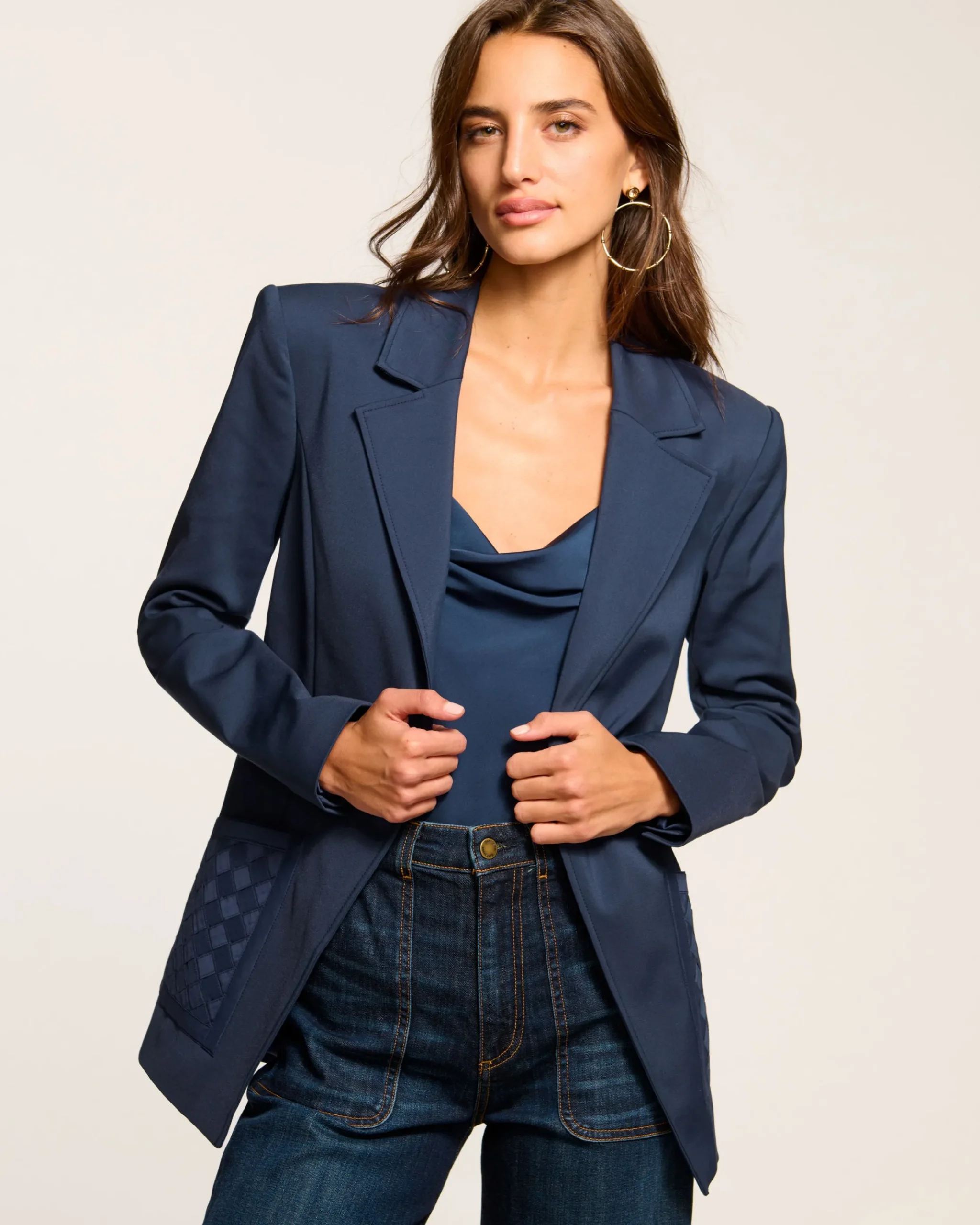 Elevate your everyday look with the Andrenetta. Woven pocket details and a single-button closure bring sleek tailoring to this fitted blazer. Its V-neckline and long sleeves make it a go-to for layering in cooler months.