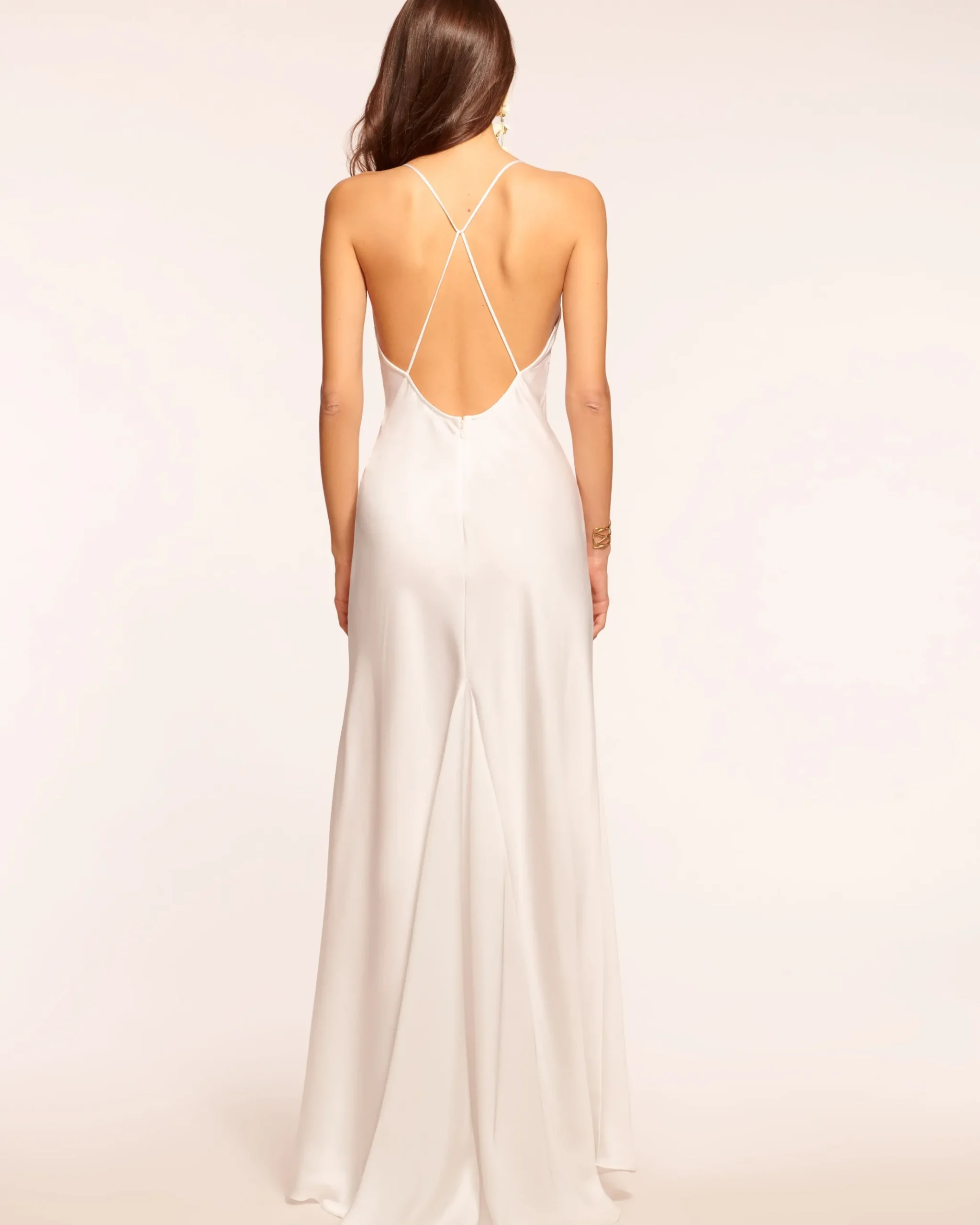 Bring ‘It Girl’ energy to your next black tie event or wedding invite with the Caspe, a simple gown with a breathtaking delivery. Adorned with a thin strap halter neckline that reveals an open back, this stretch satin style glides along your silhouette for an unforgettable wear.