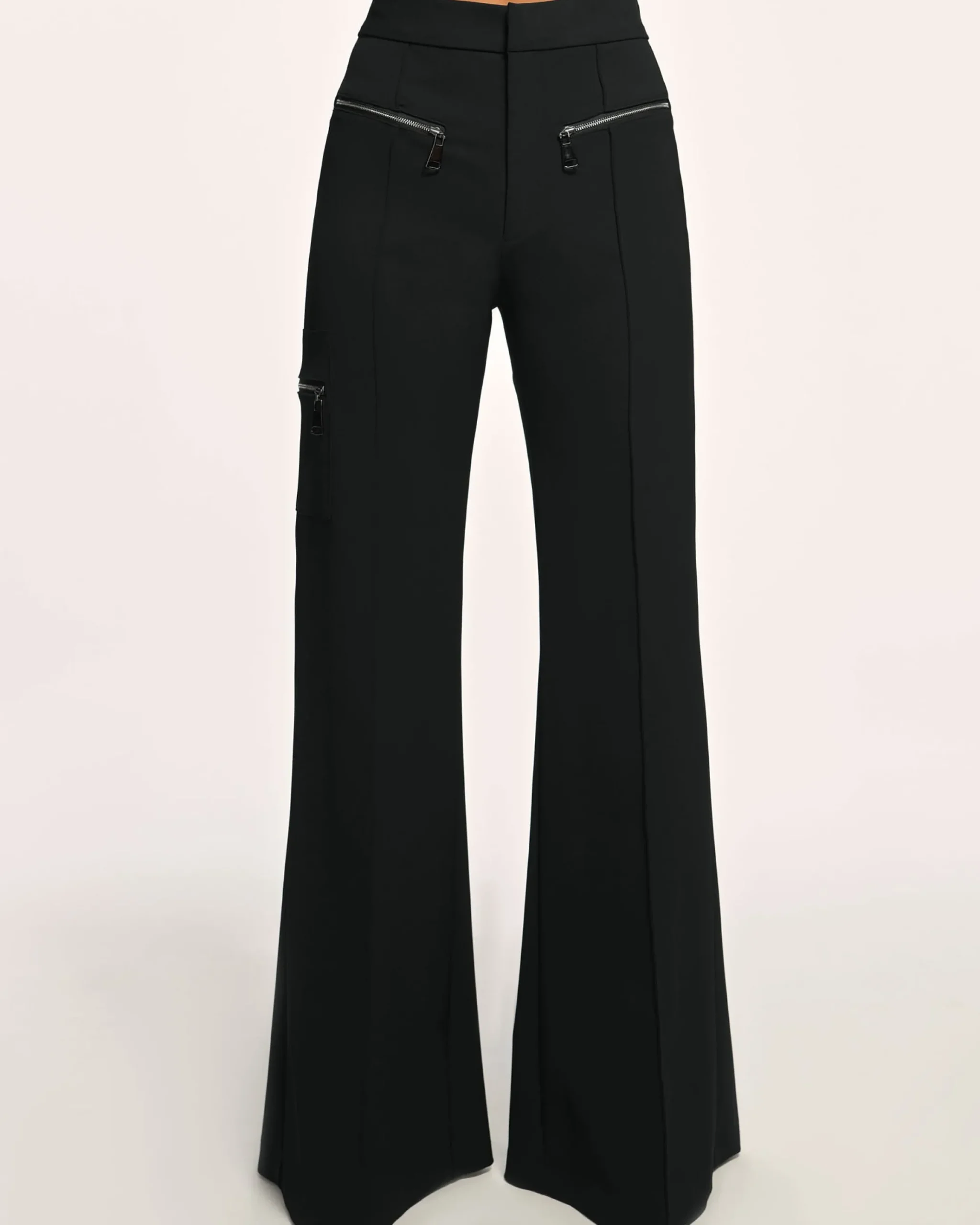 Step out in the Emory, a sculpting, versatile trouser with a retro-inspired zipper detail. Pair this sculpting, high rise wide leg pant with a blazer for the office or a slouchy sweater for date night.