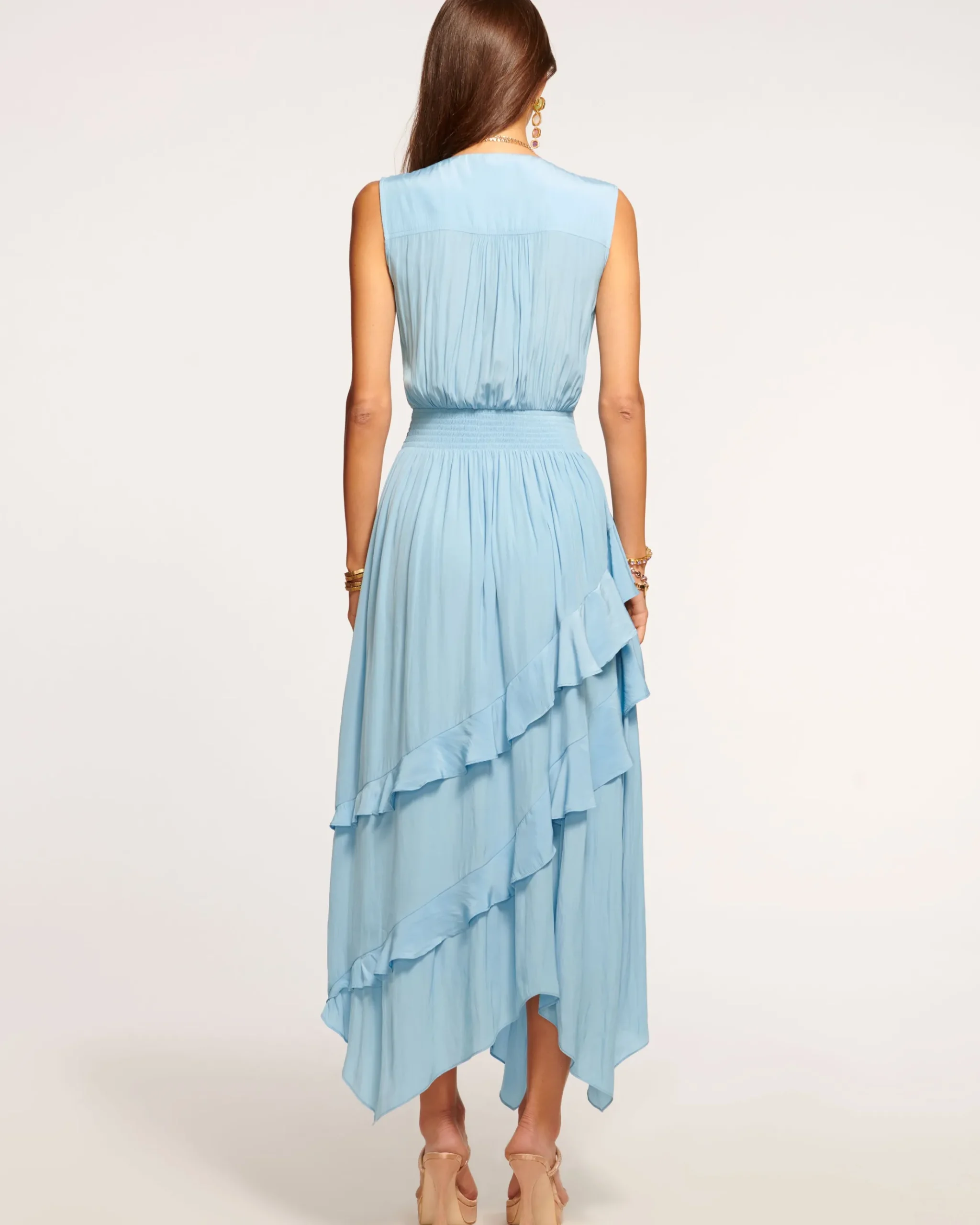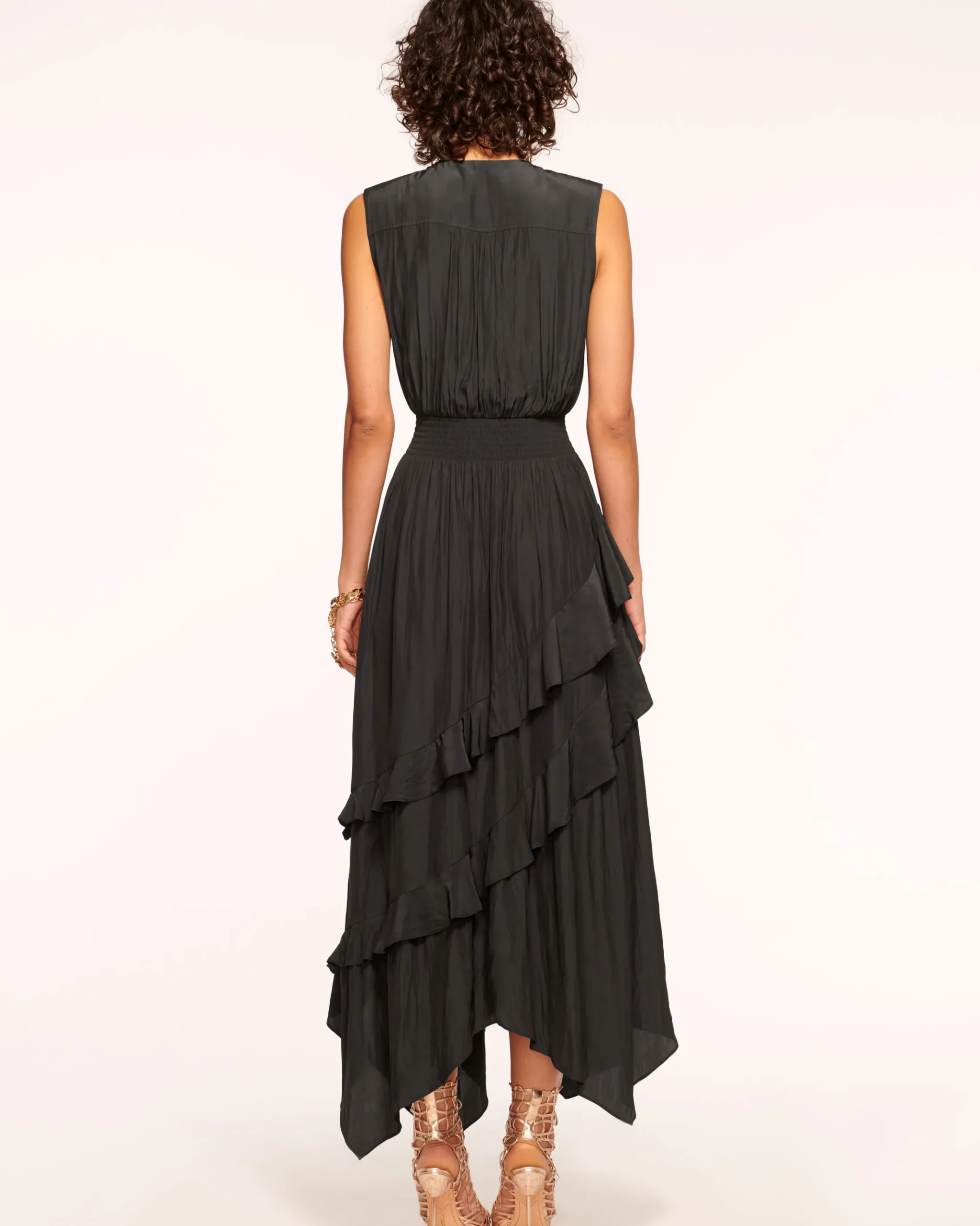 Carry yourself through the evening in confidence with the Hadlee, a beautiful crepe de chine midi dress that promises a polished wear. Beautifully crafted with a ruffled neckline and cinched waist, this statement style is the key to a memorable affair.