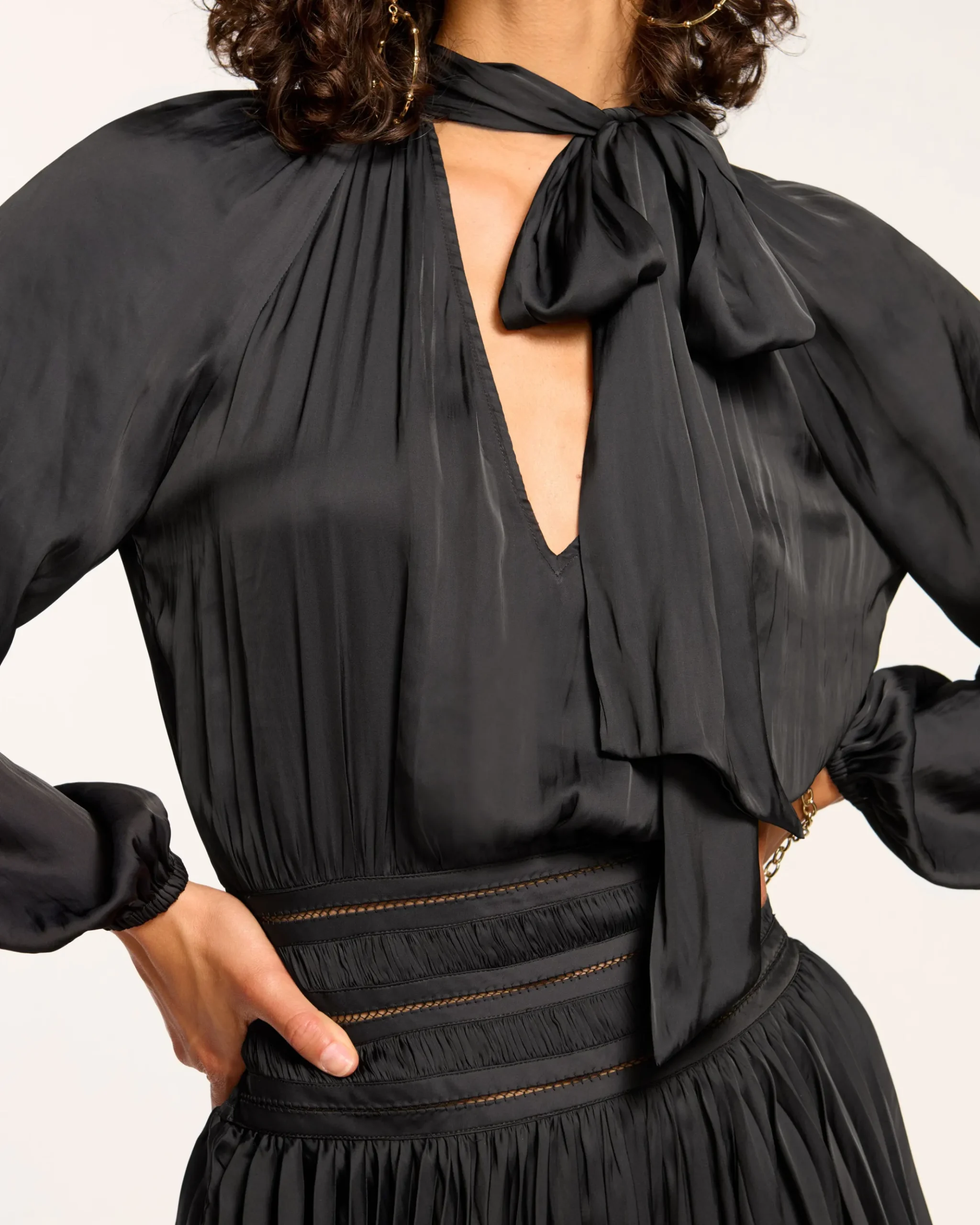 Fun and flirty, the Millie offers endless stying flexibility and versatility. It features a v-neck with a feminine neck tie, puff sleeves and a ruched mini skirt that is made for twirling on the dance floor. The intricate front waist detail is complemented by a smocked elastic back that offers a flattering, cinched fit. Pair with fun boots for daytime plans or a strappy heel for a night out.