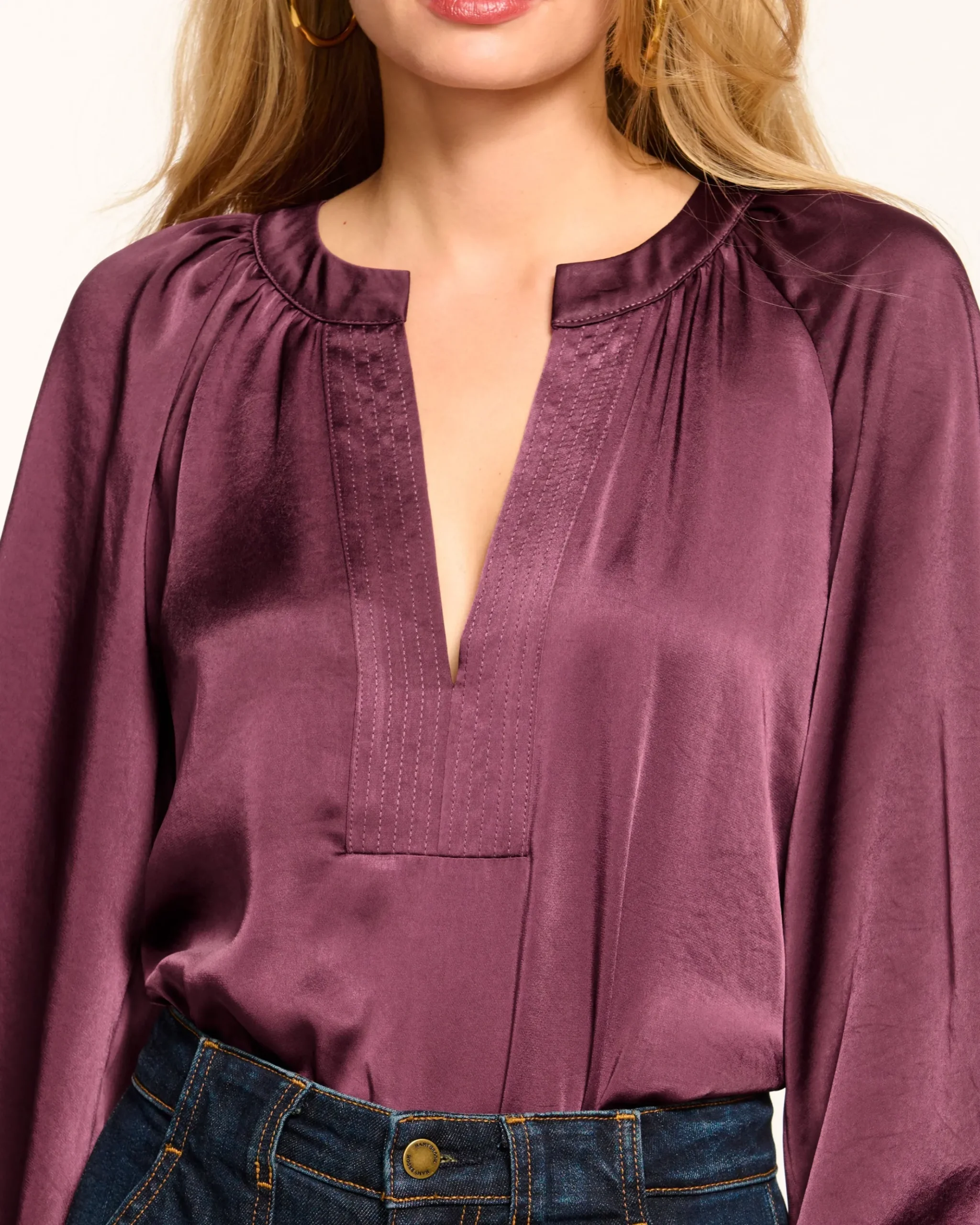 A long puff sleeve blouse designed for work or play, wear the Nevada on repeat all season. The Nevada offers a relaxed silhouette, paired with an elastic waistband perfect for tucking into denim, and leverages a v-neckline with contrast stitching detail.
