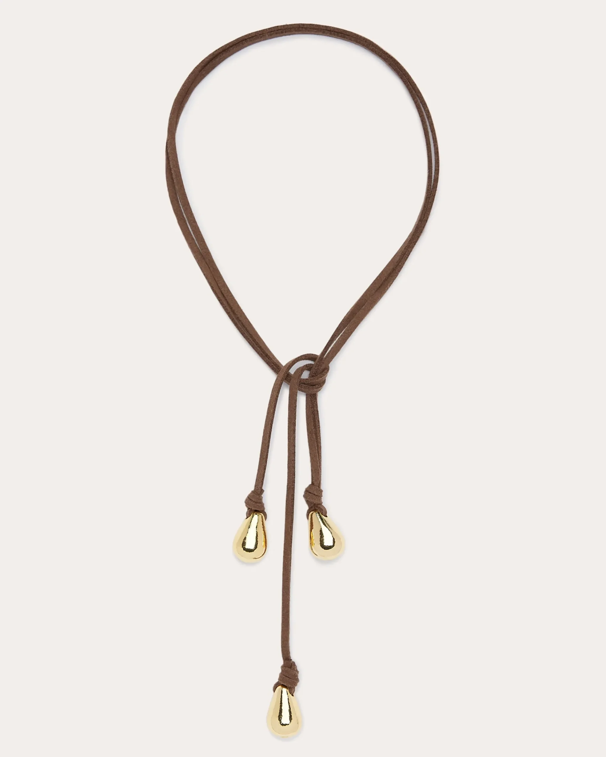 The Yara is the perfect complement to a plunging v-neck top or event-worthy dress. The double suede cord cascades into an adjustable tie accented with gold-toned brass hardware.